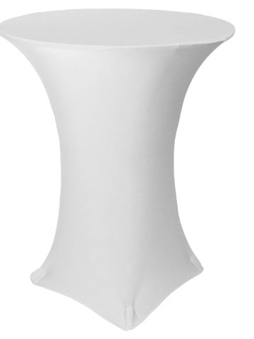 FLOOR LENGTH ON 60" ROUND TABLES, 12" ABOVE THE FLOOR ON 72" ROUND TABLES. WE HAVE ALL COLORS TO CHOOSE FROM